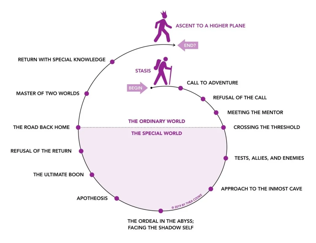 Segundo Campbell, heróis de mitos, lendas e até filmes modernos seguem uma trajetória semelhante: partem do mundo comum, enfrentam desafios, transformam-se e retornam com um novo saber.